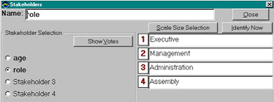 groups. Each stakeholder group may be defined with a scale of up